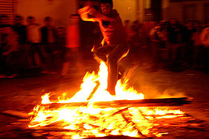 Solsticio de verano, noche de San Juan, San Joan sua, días de luz y noches de fuego. Fuego cuyo significado viene a ser el de la purificación de las personas que lo contemplan y saltan las hogueras creadas con maderas y elementos de los que se intentan desprender para siempre. Luz con la que se pretende dar más fuerza y vigor al sol que con los días irá haciéndose cada vez más débil hasta el solsticio de invierno, allá por diciembre, en el que de nuevo empezará poco a poco a remontar y tomar la fuerza necesaria para darnos calor y bienestar.Días de ritos ancestrales, como el de beber agua y lavarse en determinadas fuentes mágicas para sanar y evitar enfermedades cutáneas. Días llenos de tradiciones y momentos especiales en los que se pueden ver los portales rodeados de ramas de fresno (lizarra en euskera), disfrutar de la bordon dantza