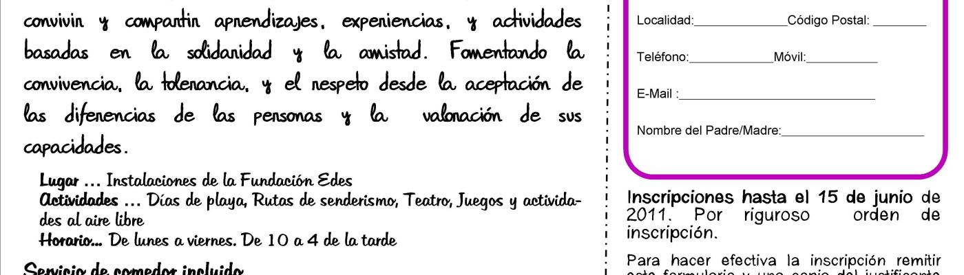 Además este año volvemos a abrir el Centro de Ocio de Verano a otros niños, niñas y jóvenes de la comarca con y sin discapacidad, ofreciendo la oportunidad de conocer otras realidades, otras formas de comunicación y otras herramientas para el buen desarrollo personal.