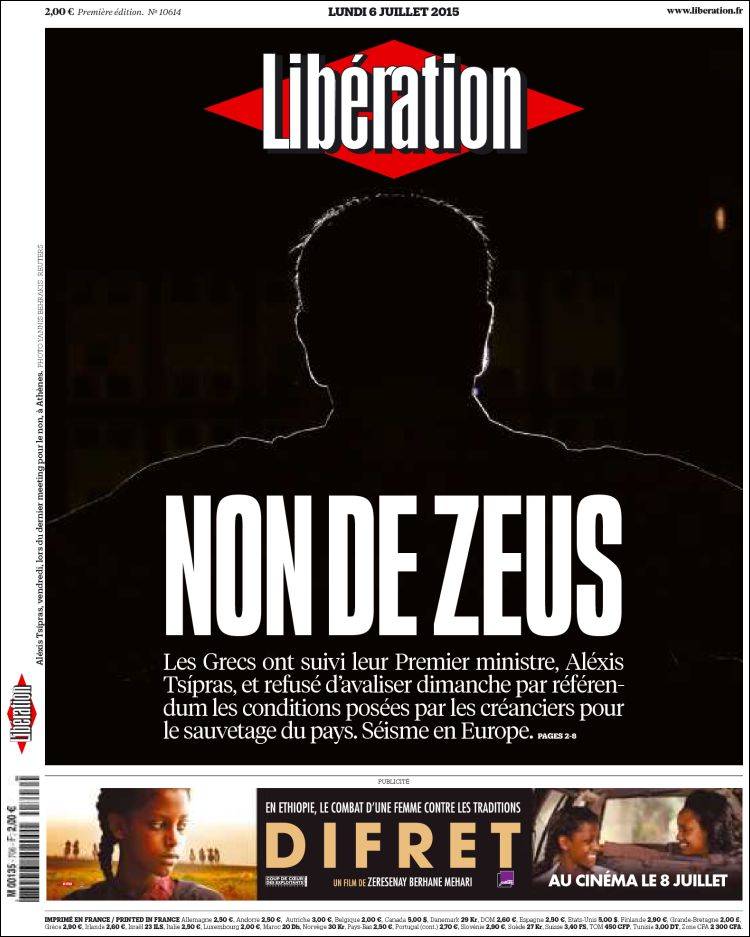 "El NO de Zeus" Quizás la mejor tapa sobre el referéndum.  ©Yannis Behrakis/Reuters «El NO de Zeus» Quizás la mejor tapa sobre el referéndum. ©Yannis Behrakis/Reuters