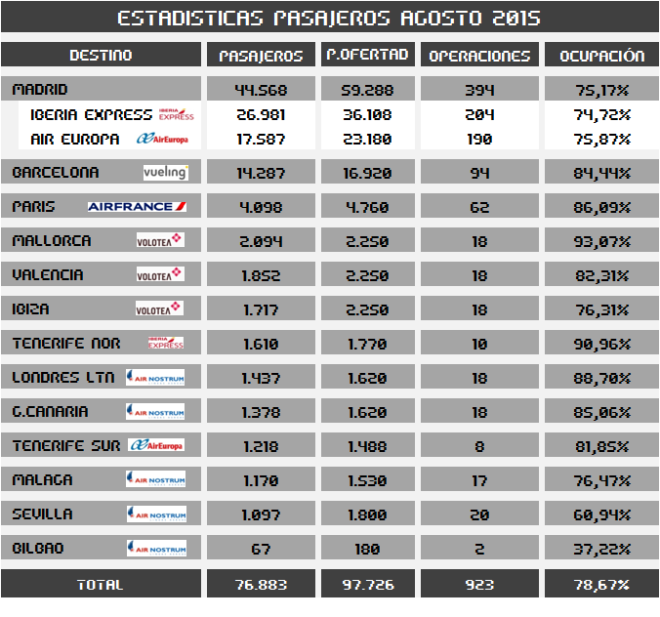 Crecemos un 10,2% en pasajeros en agosto, un buen dato que apuntala el crecimiento que lleva el aeropuerto en el ultimo año.