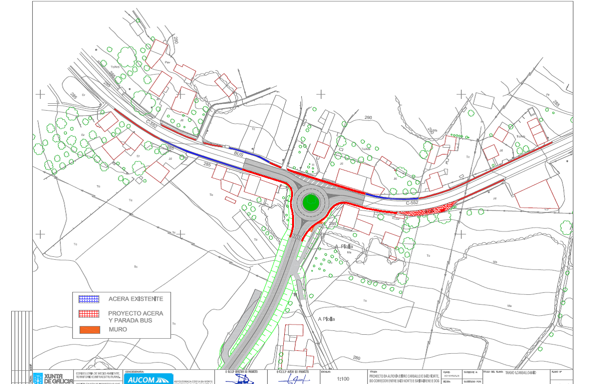 - Para minimizar la afición al tráfico actual, como solución provisional se ejecutó una intersección perpendicular a la AC-552 que funcionará hasta la ejecución de la rotonda definitiva