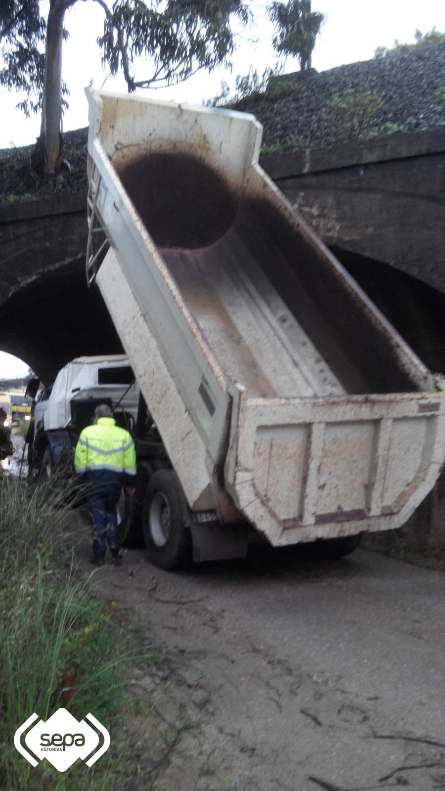 El trabajador tuvo que ser excarcelado del interior de la cabina por efectivos de Bomberos del Servicio de Emergencias del Principado de Asturias (SEPA) del parque de Avilés. Los bomberos evacuaron al afectado con ayuda de la camilla bañera a través del hueco de la ventanilla del copiloto. El techo de la cabina del camión quedó totalmente aplastado tras colisionar la bañera contra el túnel.