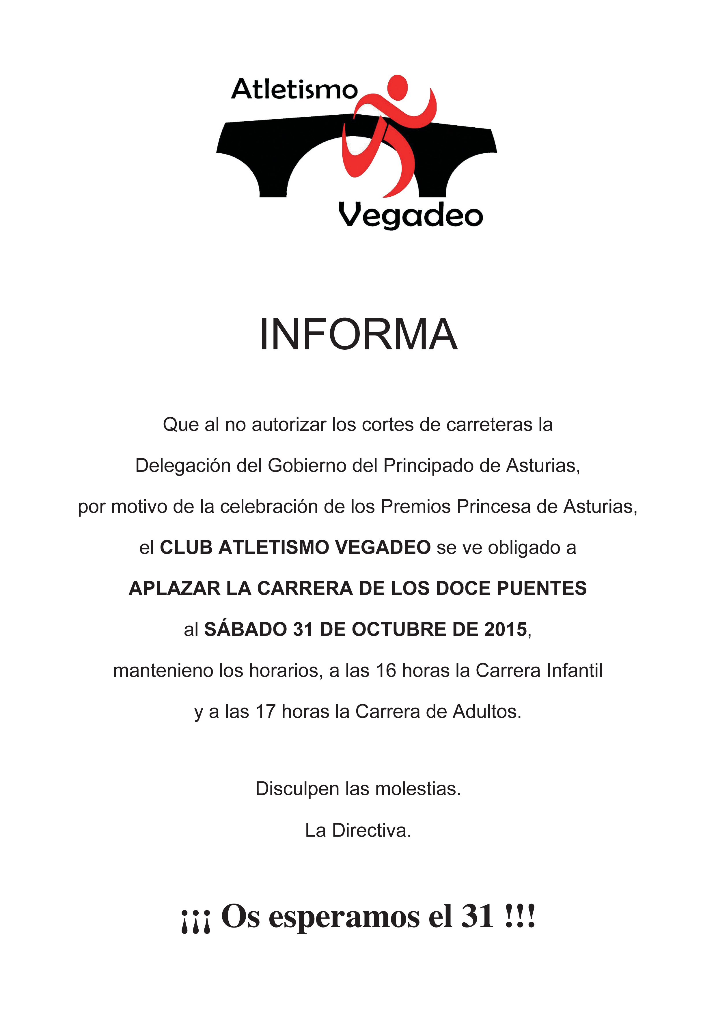 Se aplaza la Carrera de los Doce Puentes de Vegadeo hasta el 31 de octubre