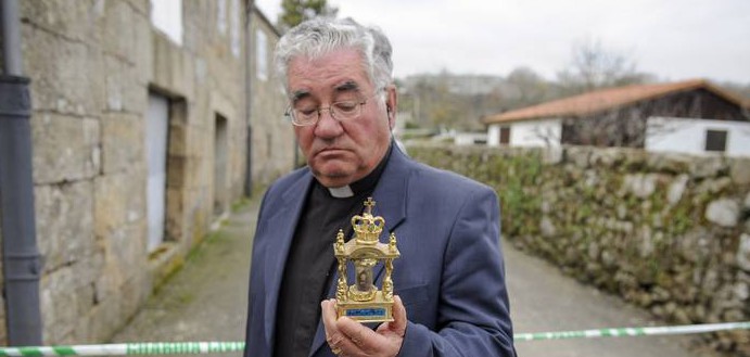 La Guardia Civil ya no tiene dudas de que Adolfo Enríquez Méndez, párroco de Vilanova dos Infantes desde 1969, fue víctima de un robo violento en el que perdió la vida, supuestamente tras recibir varios golpes, al menos uno contundente en la cabeza, sin que se descarte el uso de algún objeto. La autopsia practicada ayer en el Complexo Hospitalario Universitario de Ourense (CHUO), durante cuatro horas, confirmó que una posible paliza le causó la muerte. Ya inconsciente o malherido, lo habrían cerrado en el pajar. No hay signos de que fuera arrastrado, según fuentes próximas al caso. La Policía Judicial, que ayer buscó huellas y rastreó cada metro de la vivienda, el patio y el galpón donde apareció el cuerpo, busca recomponer el puzle. A la espera de que una religiosa que conoce la ubicación de la imagen lo corrobore in situ, creen que la Virxe do Cristal, una figura singular de apenas 5 centímetros datada en el siglo XVII, fue parte del botín que se llevaron los asaltantes. Desvalijaron la casa sacerdotal por completo. También se contempla la posibilidad de que los autores se hayan deshecho ya de ella, dado su complicada venta en el mercado negro y su escaso valor económico -200 euros según estimó otro cura; no así religioso e histórico.