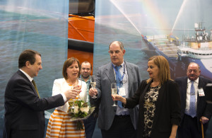 Vigo, 25 de mayo de 2016.- La segunda jornada de la Feria internacional de la Industria Naval de Vigo no pudo tener un mejor arranque para el sector. A primera hora de la mañana, el stand de astilleros Gondán era el escenario de la firma del contrato con la naviera Nabia para la construcción de un catamarán destinado al tráfico de pasajeros en la Ría de Vigo.