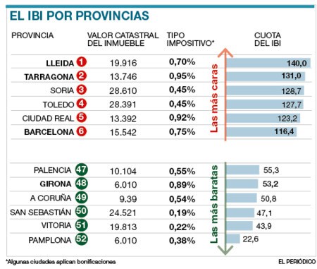 El Impuesto sobre Bienes Inmuebles, conocido comúnmente como IBI, es untributo directo cuya finalidad es gravar el valor de los bienes inmuebles en los términos establecidos en el el Texto Refundido de la Ley del Catastro Inmobiliario (TRLCI), que clasifica los bienes inmuebles en urbanos, rústicos y de características especiales (presas, autopistas, aeropuertos, etc).