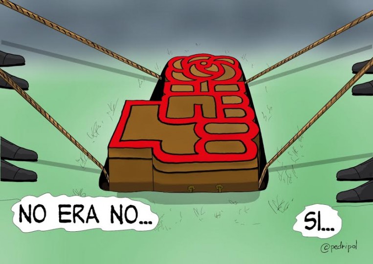 Rajoy le dice al Rey que no se presenta a la investidura, que para perder ni se molesta. Pero Pedro Sánchez, el líder del PSOE, la segunda fuerza más votada casi con el mismo porcentaje que Podemos, se anima a intentarlo. Está muy condicionado –siempre lo estuvo– por la derecha de su partido, o si se quiere, por los más acomodados. Firma un pacto sorprendente (o no) con Ciudadanos que no le aporta los escaños necesarios.