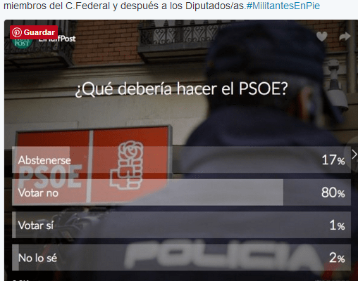 3. […] es un día muy triste para el PSOE. Se ha puesto de relieve el divorcio que hay entre los órganos directivos y la militancia. Ha quedado claro que hay una gran división dentro del PSOE. Lo demuestra el hecho de que haya […]