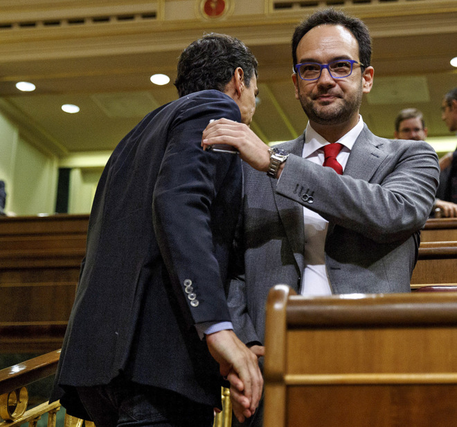 Mientras el Grupo Socialista especula con Sánchez, ayer los diputados del PSOE asistieron al «papelón», como dijeron desde todos los sectores, del portavoz socialista, Antonio Hernando, que tuvo que defender la abstención del PSOE para «evitar el desastre de las terceras elecciones».