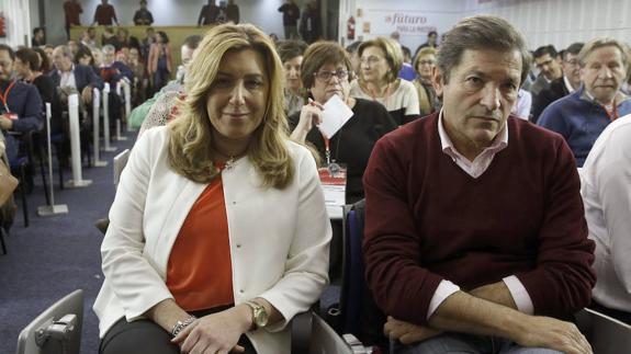 En la foto, Susana Díaz y Javier Fernández haciendo prácticas de banquillo. Animad esas caras, chicos.