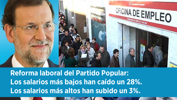 ¿Quién se beneficia de la Reforma laboral del PP? Según un estudio de Intermon Oxfam, los salarios han caído más entre quienes menos cobran, es decir los más pobres están pagando las consecuencias de la Reforma laboral del Partido Popular.