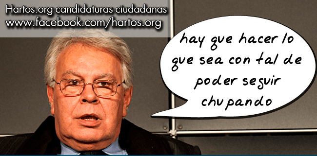 Leo con atención y estupor sus miserables declaraciones de este domingo alertando de que votar a IU es ayudar a que gane la derecha. No señor González. A la derecha la han traído ustedes, y la han traído poniéndole una alfombra roja hasta la Moncloa y arrodillando a lo poco que quedaba de la democracia española ante la pestilencia de los “mercados”.