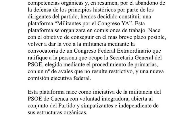 Origen: Nace una plataforma de militantes del PSOE «por el Congreso Ya»