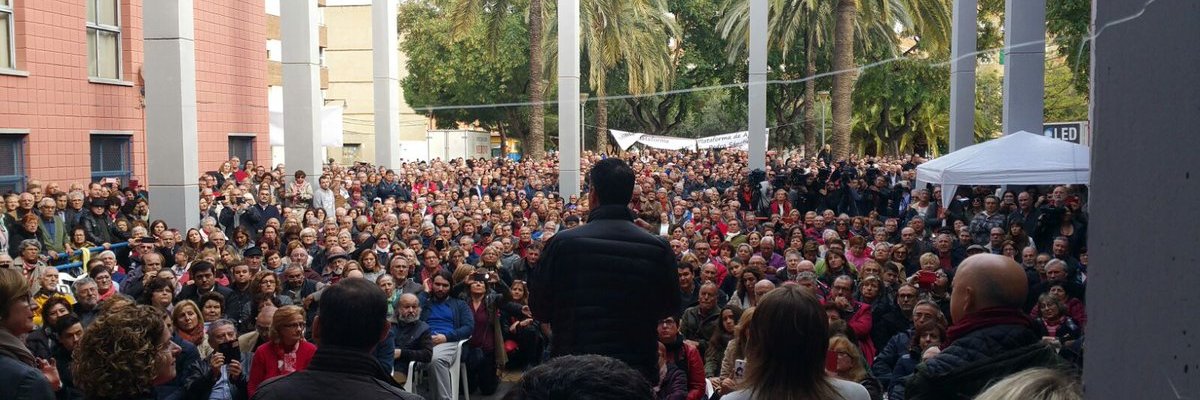 La multitud de militantes -hubo que sacar el encuentro a la calle y miles de sillas para todos los que habían acudido- entonó con fervor y convicción el famoso ‘No es No’ en el momento en que llegaba a Xirivella su exsecretario general Pedro Sánchez. Se solidarizaban así con los 5,5 millones de votantes socialistas que apoyaron este lema en las urnas el pasado junio de 2016, y que luego se vieron traicionados sin consultar ni a la militancia cuando los barones y la gestora decidieron por su cuenta permitir un gobierno de la derecha corrupta del PP.