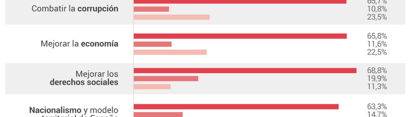 Sánchez arrasa entre el electorado socialista en las seis preguntas hechas a los encuestados, pero la distancia es mayor con la presidenta andaluza cuando se mencionan su capacidad para combatir la corrupción. Sólo un 10,8% de los votantes socialistas creen que Díaz está mejor preparada para luchar contra la lacra. En esa percepción puede pesar la dureza del exlíder frente a esos casos y la sombra del caso de los ERE que planea sobre la Junta de Andalucía y el socialismo de esa comunidad.