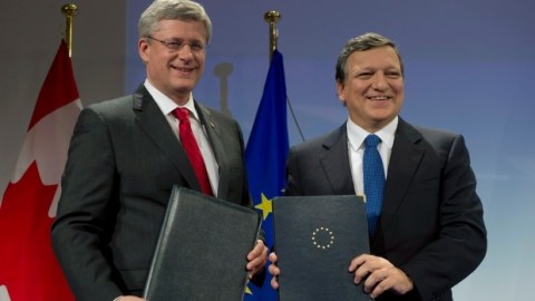Stephen Harper y Jose Manuel Barroso tras firmar el acuerdo en 2013.