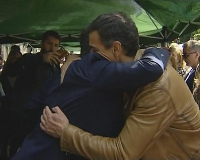 Pedro Sánchez aprovechó su estancia en Barcelona para acercarse a la feria del libro del Día de Sant Jordi. Allí estaba uno de sus rivales a la secretaría general del partido, Patxi López, que firmaba ejemplares de su libro ‘La Izquierda necesaria’. Sánchez dio una sorpresa a López, que lo miró con cara de incrédulo al verlo allí. El exsecretario general quería que López le firmara su libro, algo que hizo López de inmediato y luego se fundieron en un abrazo ante el secretario general del PSC, Miquel Iceta.