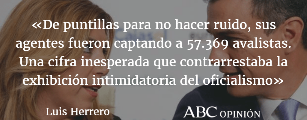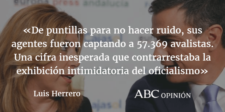 A nadie le dio por pensar que Sánchez libraría una batalla que estaba fuera de su alcance. Contra el poder intimidatorio del aparato, la idea de competir en número de fiadores con Susana Díaz era una imprudencia temeraria que no tenía ni pies ni cabeza.