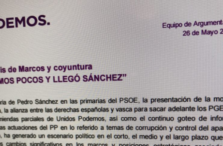 Podemos está preocupado por la victoria de Pedro Sánchez como revelan documentos internos. En ellos se detalla que tienen que “jugar con inteligencia nuestras cartas a modo de cortafuegos” ya que hasta el día de la moción de censura, el 13 de junio, aún conservan la iniciativa en la izquierda.