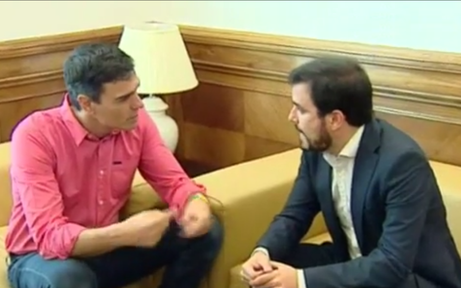 Alberto Garzón ha resaltado «lo urgente», que trabajarán para derogar las leyes del PP y aprobar leyes con otros partidos y «lo importante», que es echar al PP aunque ha remarcado que en el corto plazo no es viable.