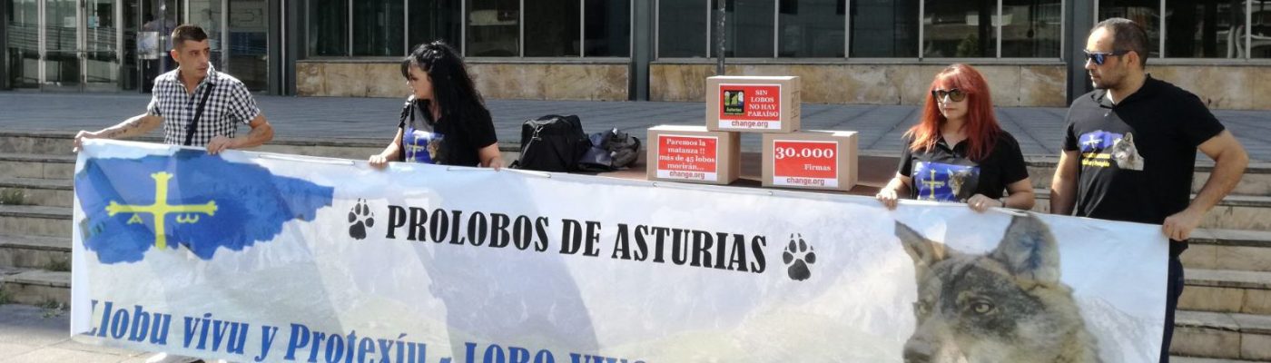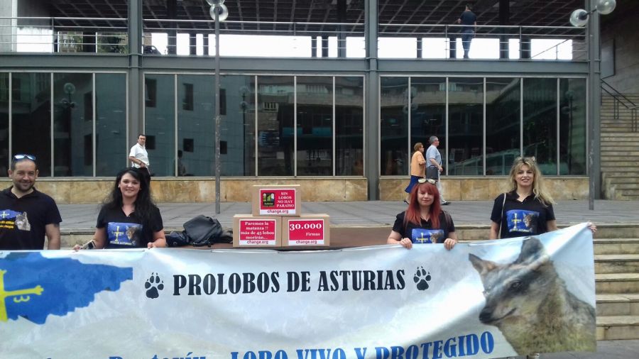 Hoy se ha hecho entrega simbólica en el registro del Principado delas 30.000 firmas recogidas contra las matanzas de lobos en los 2 últimos meses.