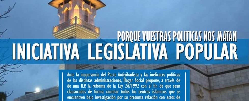 El colectivo Hogar Social va a presentar una Iniciativa Legislativa Popular con el objetivo de modificar la Ley 26/1992, del 10 de noviembre, por la que se aprueba el Acuerdo de Cooperación del Estado con la Comisión Islámica en España. Buscan clausurar las mezquitas relacionadas con “atentados terroristas o actividades presuntamente ilícitas de carácter yihadista”.