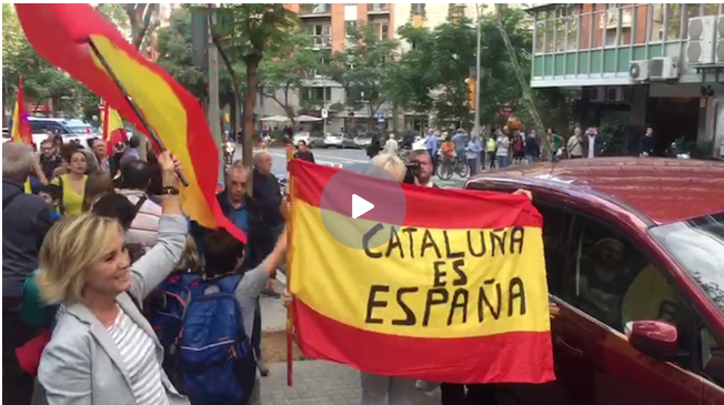 Instantánea del vídeo de la manifestación de mil personas a las puertas de la ANC. «No nos engañan: Cataluña es España».