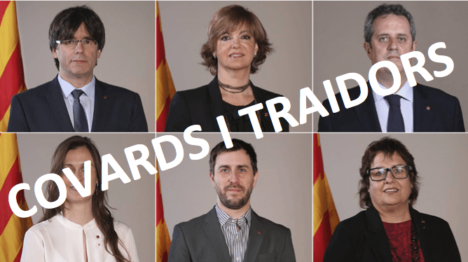 El 26 de enero de 1939 Santcompanys huyó de Barcelona y abandonó a su pueblo, entrando en Francia como un ricachón mientras quienes habían combatido por él se hacinaban en campos de concentración junto a las playas del Rosellón. Una covardia digna del genocidi que va perpetrar contra els catalans: al menos 8.129 catalanes fueron impunemente asesinados bajo el gobierno de Companys, el president colpista i genocida que adoren els nostres exdirigents. Su gobierno fue el peor que ha tenido jamás Cataluña, y es el que nos ponían como modelo Puigdemont y Mas.