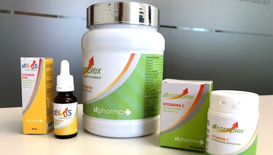 Como Sfcomplex, una cuidada gama de complejos vitamínicos, que constituye una equilibrada composición de ácido fólico, biotina, riboflavina, falatos y vitaminas A, D, E, B1, B2, B3, B6, B12 y C, y que se halla disponible en diferentes presentaciones para adultos y niños.