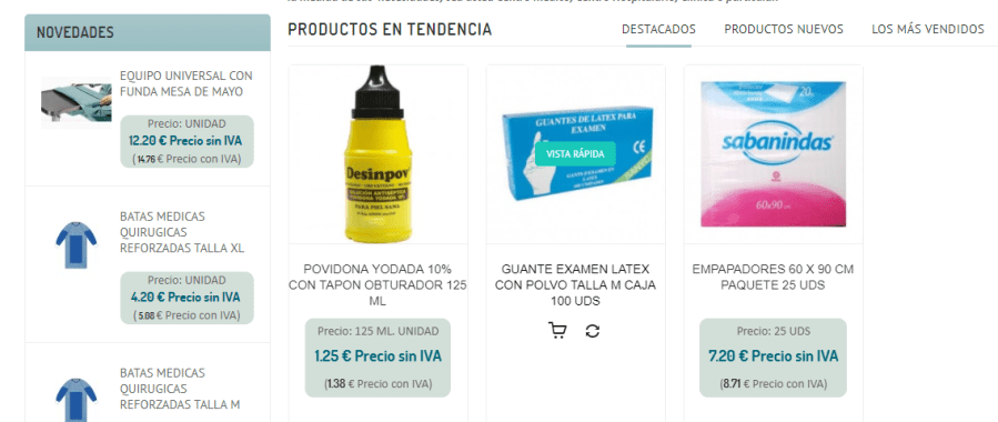 - El cliente tiene a su disposición en la web una amplia variedad de productos desechables, material geriátrico y medicina veterinaria.