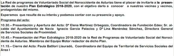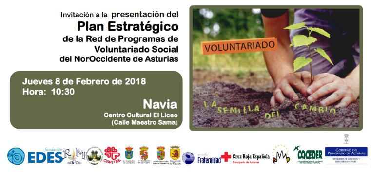 El Principado de Asturias y la Fundación EDES presentan el próximo 8 de febrero a las 10:30 horas en el Espacio cultural El Liceo, de Navia el Primer Plan Estratégico 2018-2020 de Voluntariado Social para el Área I.