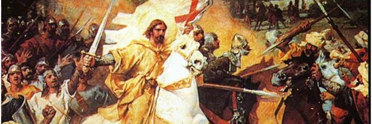 Al grito de «Santiago y ¡cierra, España!», Hernán Cortés se abrió paso en la batalla de Otumba (1520) junto a cinco jinetes (Pedro de Alvarado, Alonso de Ávila, Cristóbal de Olid, Rodrigo de Sandoval y Juan de Salamanca) en dirección al jefe militar azteca. Según una leyenda que surgió poco después de la batalla, el Apóstol Santiago, patrón de España, también secundó a caballo la carga casi suicida contra miles de guerreros aztecas, como se cuenta que había hecho en varias contiendas contra los musulmanes en la Península Ibérica.