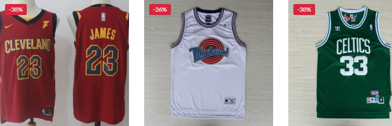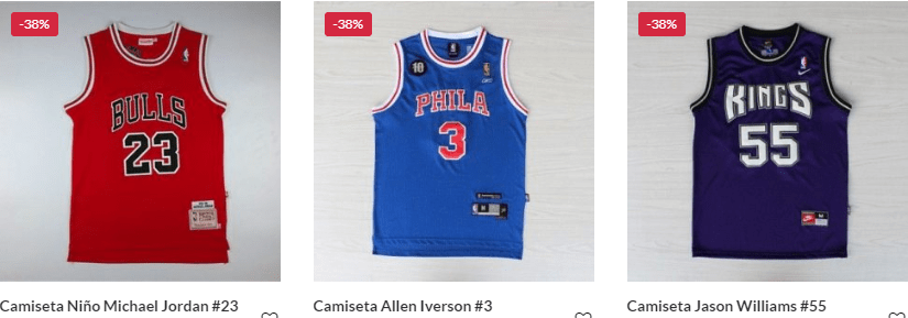 Los aficionados que ambicionan camisetas de los equipos de la NBA y sus jugadores más emblemáticos las encuentran en esta página sin dificultad. A diferencia del fútbol, los seguidores de este deporte animan con frecuencia no solamente a uno, sino a varios equipos de la liga NBA, y por tanto suelen hacerse con camisetas de todos ellos.