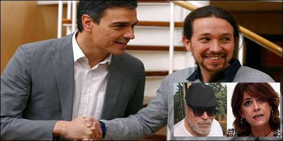 Así, el desencadenante ha sido esta vez las grabaciones del ex comisario Villarejo que revelan la complicidad y conchabanza de éste con los actuales biministros de Justicia, esto es, con el ex juez Garzón y quien, por estar éste inhabilitado para cargo público, desempeña oficialmente el puesto, la fiscal Dolores Delgado. Esta última llega al extremo de aplaudir la extorsión del comisario a empresarios por medio de una red de prostitución para obtener «información vaginal» que sirva de aprovechamiento de lo que éste llama «El Gremio». «¡Éxito garantizado!», le jalea la hoy ministra sin censura ni repudio alguno hacia Villarejo del que se vale, junto a Garzón, para que le quite de en medio a agentes que no son de su estima.