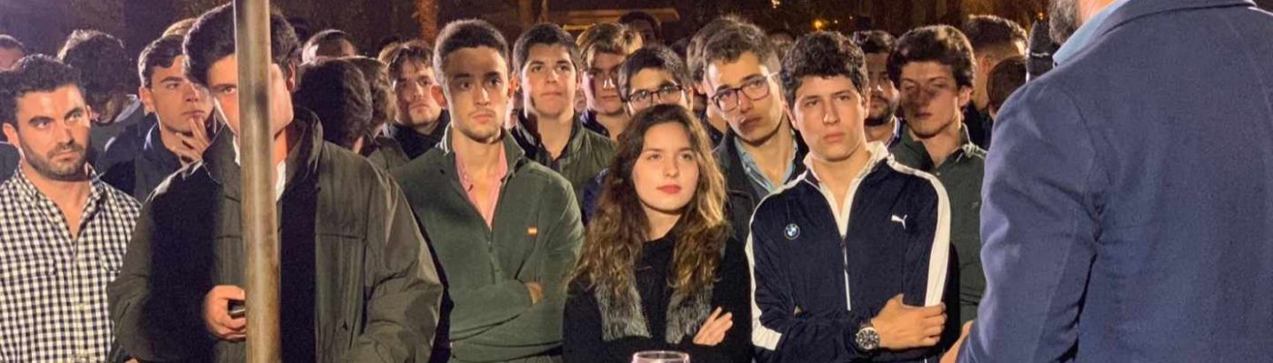 Los chavales, unos 350, esperan tranquilos saludándose, preguntándose por sus familiares y hablando de sus estudios. El ambiente es tranquilo, con escasas banderas de España y sólo una de Vox entre los asistentes. No se produce ninguna expresión política ni de exaltación ideológica más allá de ‘vivas a España’ durante la intervención del líder del fenómeno Vox, Santiago Abascal, que termina el acto abrumado tras pasar una hora con jóvenes que quieren fotografiarse con él. “Hay que cambiar España. El próximo ‘cañas por España’ en el chalet de Pablo Iglesias”, es lo más atrevido que se escucha.