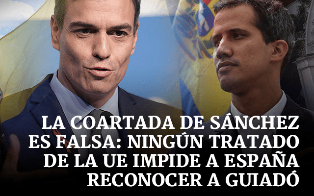 Mientras Pablo Casado, Santiago Abascal y Albert Rivera pedían inmediatamente el reconocimiento de Juan Guaidó; mientras Donald Trump era el primero en dar reconocimiento internacional al presidente de la Asamblea Nacional de Venezuela y de la oposición democrática venezolana; y mientras el propio Donald Tusk compartía el mensaje frente al dictador Maduro; mientras todo eso ocurría, el presidente Pedro Sánchez se ponía de perfil y daba orden de esperar hasta tener un comunicado oficial de reconocimiento de la UE para aceptar oficialmente a Guaidó. La explicación era obvia: el PSOE mantiene un pacto con Podemos y el partido de Iglesias no tardaba en rechazar cualquier reconocimiento a un opositor al que calificaba de golpista.