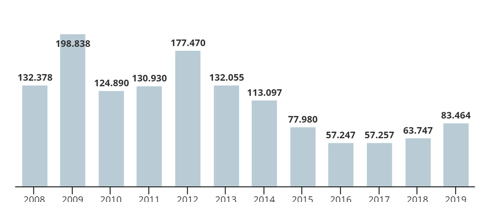 La cifra total de desempleados se sitúa en 3.285.761. En términos interanuales, si lo comparamos con enero de 2018, se acumula una reducción del desempleo del 5,49% de tal forma que en la actualidad se registran 190.767 parados menos. En términos desestacionalizados, el paro sube en 3.292 personas.