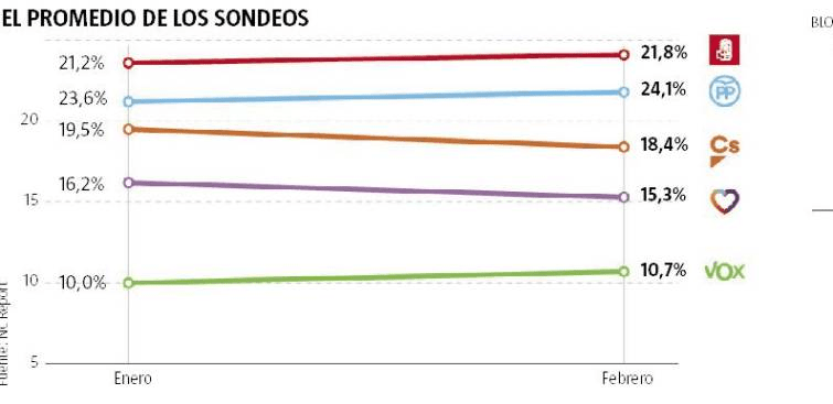 Pero además la tendencia es a ir agrandando esa brecha a favor de la derecha, y eso gracias a VOX: en el último mes ha crecido 0,6 puntos.