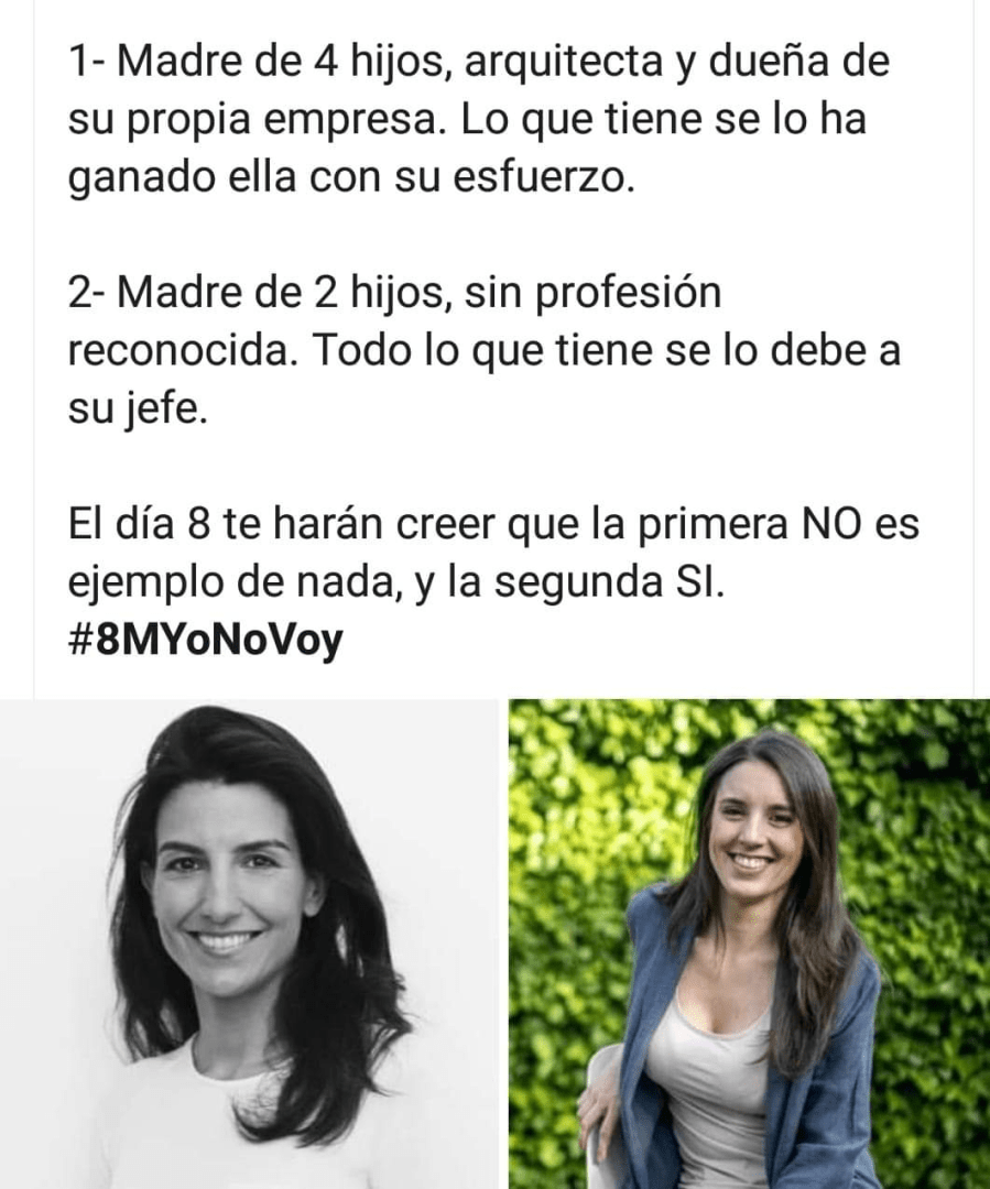 Un comentario sobre “Ver «Las mujeres de VOX rompen con la huelga feminista del 8M» en Youtube / Abordan los actos feministas del próximo viernes como una «pantomima subvencionada»/«Creemos en defender la verdadera igualdad educando en el respeto y no adoctrinando en la desigualdad»