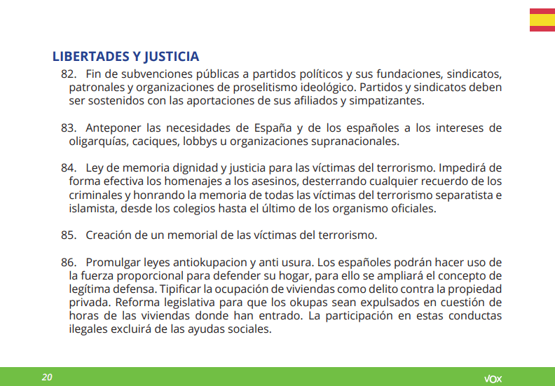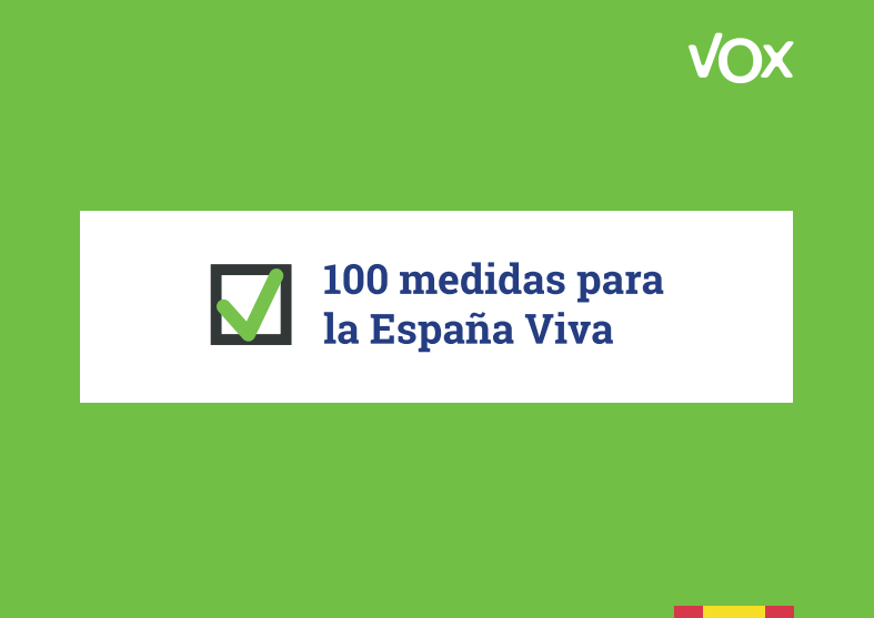 Durante el multitudinario acto de VOX en Vistalegre, se ha presentado las 100 medidas urgentes de VOX para España, atendiendo a los problemas que más preocupan a los españoles: la unidad de España, la destrucción de clase media, los elevados impuestos, la seguridad de nuestras fronteras y el recorte de las libertades.