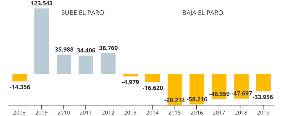 En el conjunto de España, este mes de marzo se crearon 155.104 empleos, frente a los 423.863 que se generaron en el mismo mes de 2018. Supone, por tanto, un retroceso del 63,4%, un promedio nacional que es ampliamente superado por un