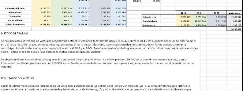 Al parecer, la empresa adjudicataria ha aplicado un criterio de publicación de votos reflejando sólo los “útiles” e ignorando los “inútiles”, explican desde el Ministerio. El Ministerio del Interior, tras contabilizar en su web un retraso de más de 50 minutos en la aparición de los datos del escrutinio la pasada noche electoral y ayer… Leer más HUY, HUY, HUY, LOS SOCIALISTAS ERRE QUE ERRE HACIENDO PUCHEROS Elecciones 2019: Interior culpa a la empresa del caos en el recuento, se excusa en que sólo registró los votos «útiles»