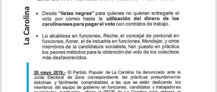 Comienzan la impugnaciones: el Partido Popular de La Carolina (Jaén) impugna el voto por correo por «prácticas mafiosas del PSOE»