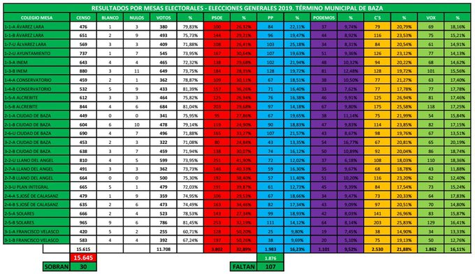 Tras el repaso a las actas @VoxBaza hadescubierto que al @populares le han quitado 107 votos. (1.876/1.983) Por “error” se los habían dado a un partido comunista. ¿Qué no nos harán en las municipales? Contra las manipulaciones, todos de apoderados e interventores @vox_es 🇪🇸💪🏻💚 https://t.co/HNRydyVI8G https://twitter.com/VoxBaza/status/1123959170284257285?s=17