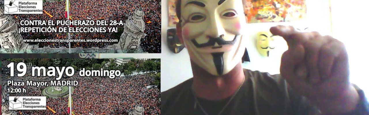 Recordad que el derecho consuetudinario apoya que el pueblo español se reúna en sus plazas mayores para tratar de asuntos de extrema gravedad, como el que nos ocupa. Una caja donde subirse y un micrófono y altavoz nos bastan para leer el manifiesto… y poner nuestro himno, que en breve conoceréis. Todas las convocatorias son a las 12 de la mañana, el DOMINGO 19 DE MAYO. Es muy importante que, seáis los que seáis, grabéis el momento de la lectura del manifiesto (con un teléfono móvil, mismamente) y lo subáis a YouTube con el título: “Concentración por la repetición de las elecciones ‘ciudad tal’ domingo 19 de mayo” para luego hacer un vídeo más grande con todos los que se hayan grabado.