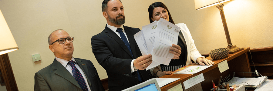 El presidente de Vox, Santiago Abascal, ha insistido este martes en que su formación no aceptará ningún «cordón sanitario» y ha ofrecido a Ciudadanos un «pacto global» que incluso lleve a Begoña Villacís a la alcaldía de Madrid o a Ignacio Aguado a la presidencia de la comunidad. En caso contrario, cree que la solución… Leer más Abascal avisa a Rivera: «Entre la espada y la pared, cojo la espada, da igual las consecuencias» / VOX propone que si Cs mantiene su veto antidemocrático, se quede fuera de los gobierno también, que serían monocolores del PP con apoyos puntuales de VOX y Ciudadanos / Pero si Ciudadanos mantiene su «cordón sanitario», Abascal cree que la solución podría ser que el PP gobierne en solitario y se apoye en pactos puntuales. Y la última opción sería la negociación de mociones de censura a posteriori si es imposible un acuerdo que evite que Manuela Carmena vuelva a ser investida alcaldesa de Madrid