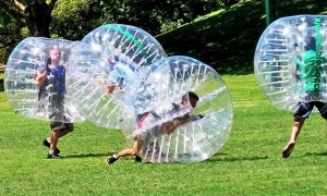 Nuestra siguiente apuesta es un partido de lo que se conoce como ‘fútbol burbuja’, traducción exacta del anglicismo bubble soccer. Esta divertida disciplina ya ha llegado a Asturias, por ejemplo. Es una novedosa forma de jugar al fútbol. El fútbol burbuja se juega en un campo de fútbol exterior de césped artificial vallado con una red, que limita hasta las paredes y el techo. Consiste en jugar un partido de fútbol, pero dentro de una burbuja de aire. La burbuja hace la diferencia, porque al mismo tiempo que dificulta algo los movimientos, amortigua los choques con otros jugadores. El partido, con dos equipos y un balón de fútbol, se convierte en algo mucho más divertido y disparatado. Se permite que los jugadores se golpeen entre sí (¡incluso si son de tu propio equipo!), puedes rodar en lugar de correr,… ¡cualquier cosa con tal de meter un gol!