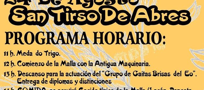 San Tirso de Abres: Malla do Trigo 2019 San Tirso de Abres: Programa de la Malla do Trigo 2019. 23/08/201923/08/2019 administradorDeja un comentario