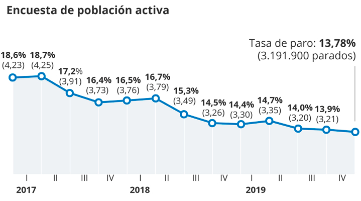 En el cuarto trimestre, la caída de desempleados tan solo fue de 22.500 personas, un 0,7%. Una cifra similar a la registrada el pasado año pero muy alejada de los 35.000 menos que por ejemplo hubo en 2016.