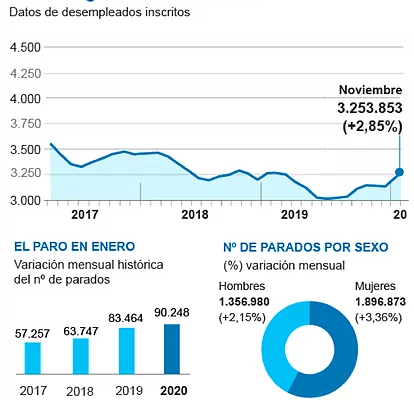 Enero es uno de los peores meses del año para el mercado laboral pero 2020 ha comenzado con un paso atrás más pronunciado que en ejercicios anteriores. El paro subió en 90.248 personas el mes pasado, lo que supone el aumento más pronunciado desde 2015, cuando aumentó en 77.000 personas.
